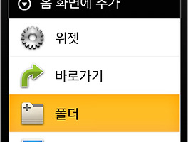 홈화면을 1초 정도 누르고 있으면 나타나는'홈 화면에 추가'라는 메뉴를 통해 화면에 위젯이나 바로가기 아이콘, 폴더 등을 추가할 수 있습니다.